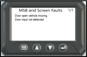 When the LCD screen ‘Fault Detected’ menu option displays a Door Fault, and the MSB Fault Light remains constantly illuminated when the ignition is turned to ON (right),