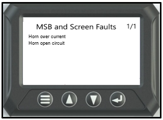 Access MSB and Screen Faults sub-menu by pressing and holding red fault symbol on screen or via holding the menu button for 3 seconds.