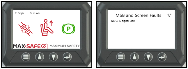 Access MSB and Screen Faults sub-menu by pressing and holding the menu button for 3 seconds.
