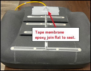 A new larger seat membrane is scoped for Phase 2 of the rollout. The images below highlight the placement of the membrane along with the required taping of the harness.